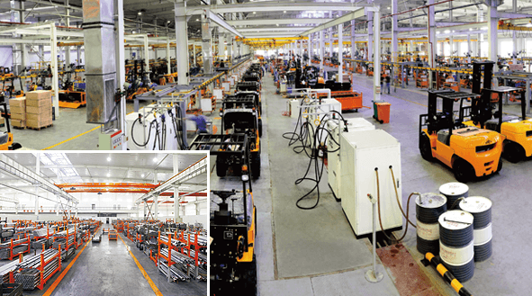 建立了國(guó)內(nèi)獨(dú)立的叉車(chē)研發(fā)及生產(chǎn)基地 擁有3條叉車(chē)總裝線(xiàn)、6條部套裝配線(xiàn)、2條油漆涂裝線(xiàn)和焊接機(jī)器人